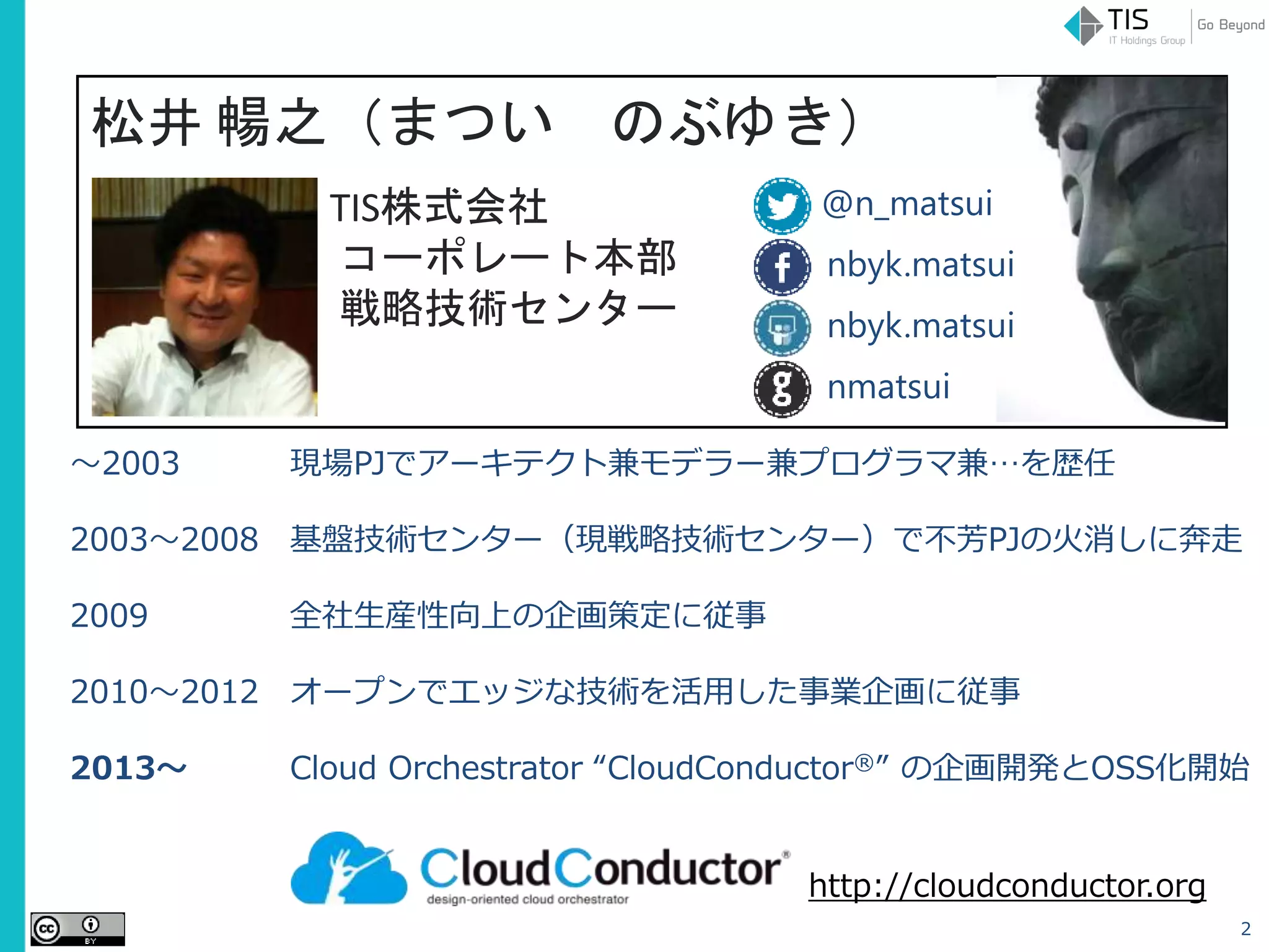 Orchestrator “CloudConductor®” の企画開発とOSS化開始 http://cloudconductor.org nbyk.matsui nmatsui nbyk.matsui @n_matsui