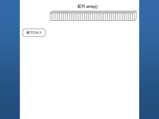 親プロセスと子プロセス • プロセスとはプログラムの実行単位(phpコマンドなど) • プロセスは自分自身の複製を作れる •