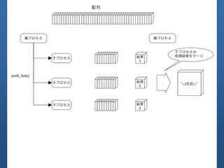 作った側「親プロセス」、作られた側「子プロセス」 • PHPではpcntl_fork()を使う