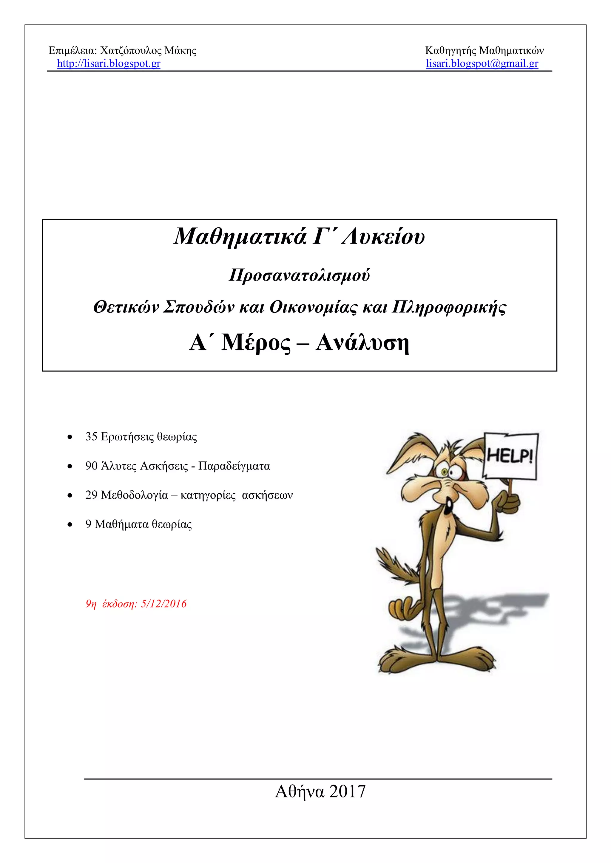 Επιμέλεια: Χατζόπουλος ΜάκηςΚαθηγητής Μαθηματικών