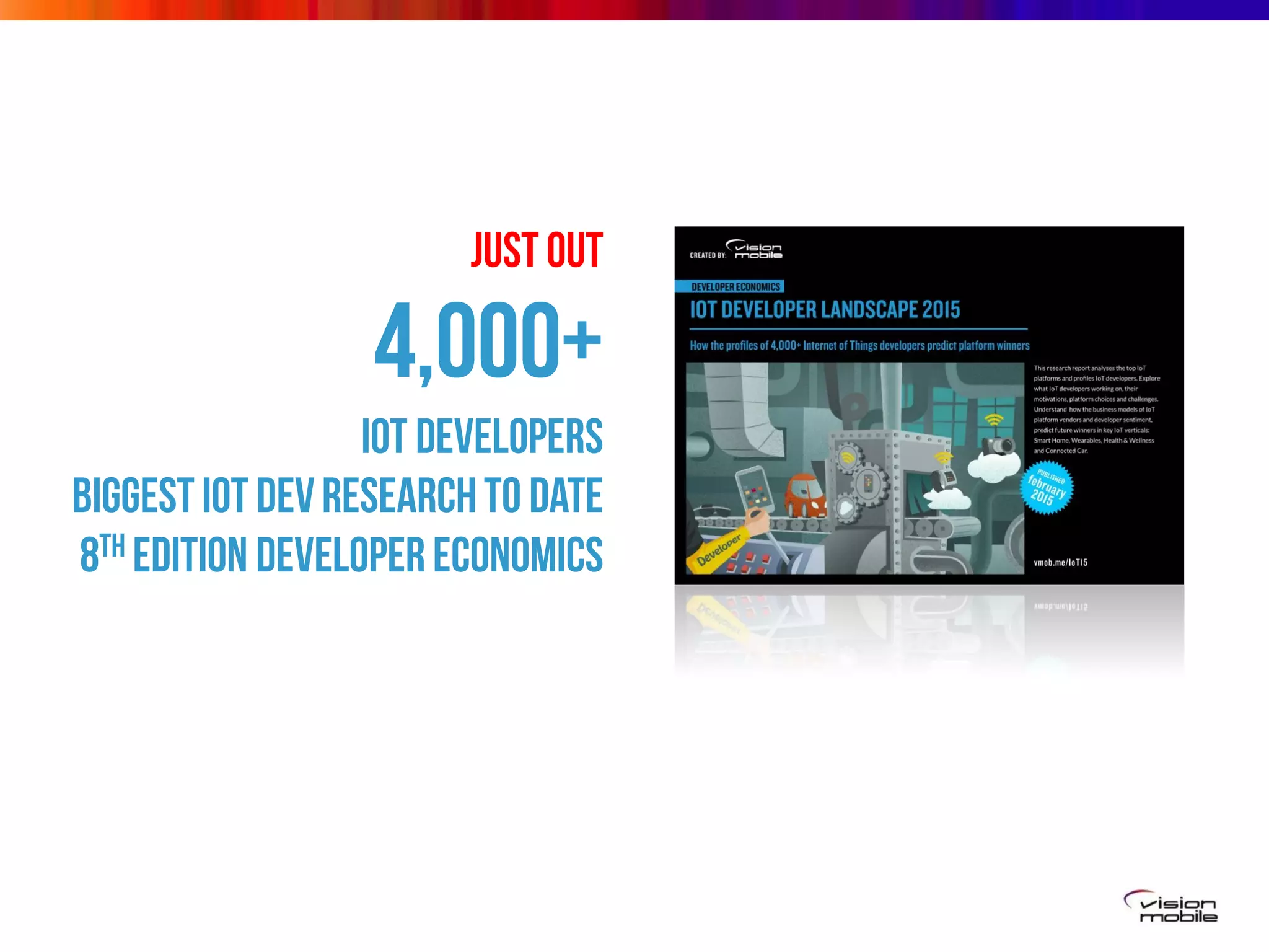 This document discusses opportunities for entrepreneurs in the Internet of Things (IoT) market. It notes that IoT allows for sensors to collect data from devices and the physical environment. This data can then be analyzed to create useful applications and services across different industries. Some examples mentioned include a learning thermostat that turns off heating when homes are empty, sensors to detect car accidents and notify emergency contacts, and sensors in roads to find available parking spaces. The document also discusses trends showing strong consumer and developer interest in IoT technologies and applications. It identifies the top challenges for IoT developers as integrating with other systems and a lack of standards. Overall, the document outlines the large market potential for IoT entrepreneurs to create new solutions that analyze sensor