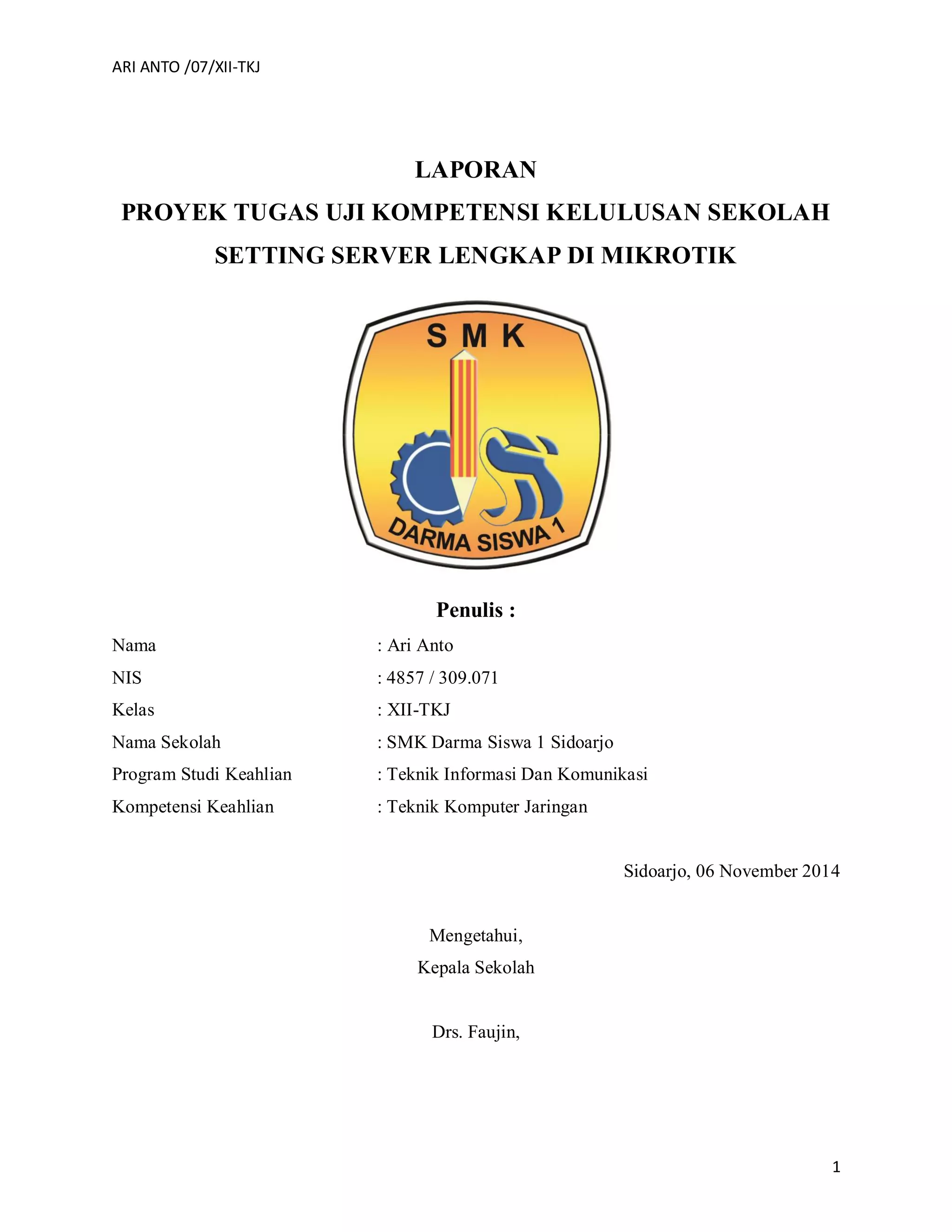 Laporan ini membahas tentang setting server lengkap di Mikrotik, meliputi:
