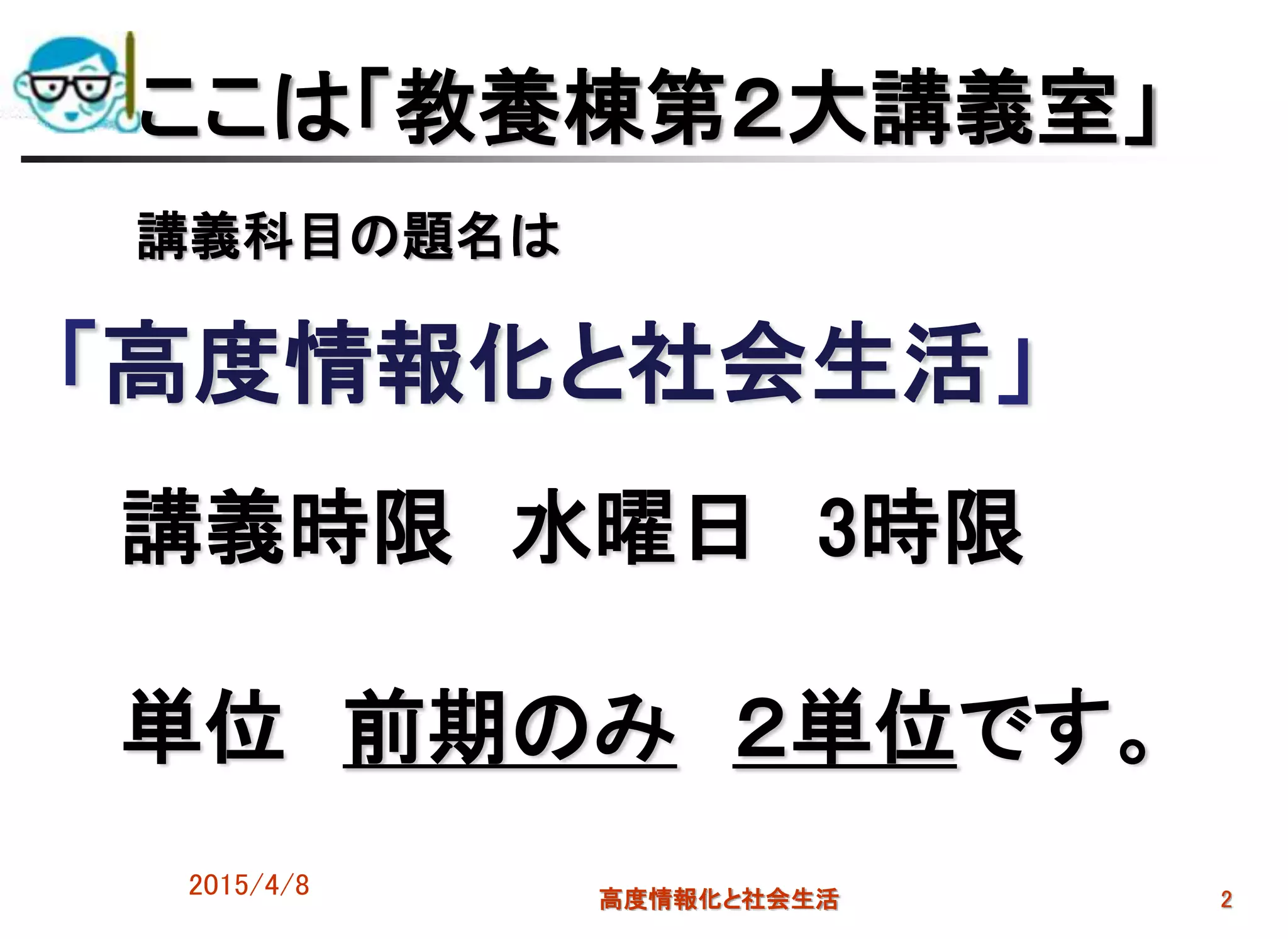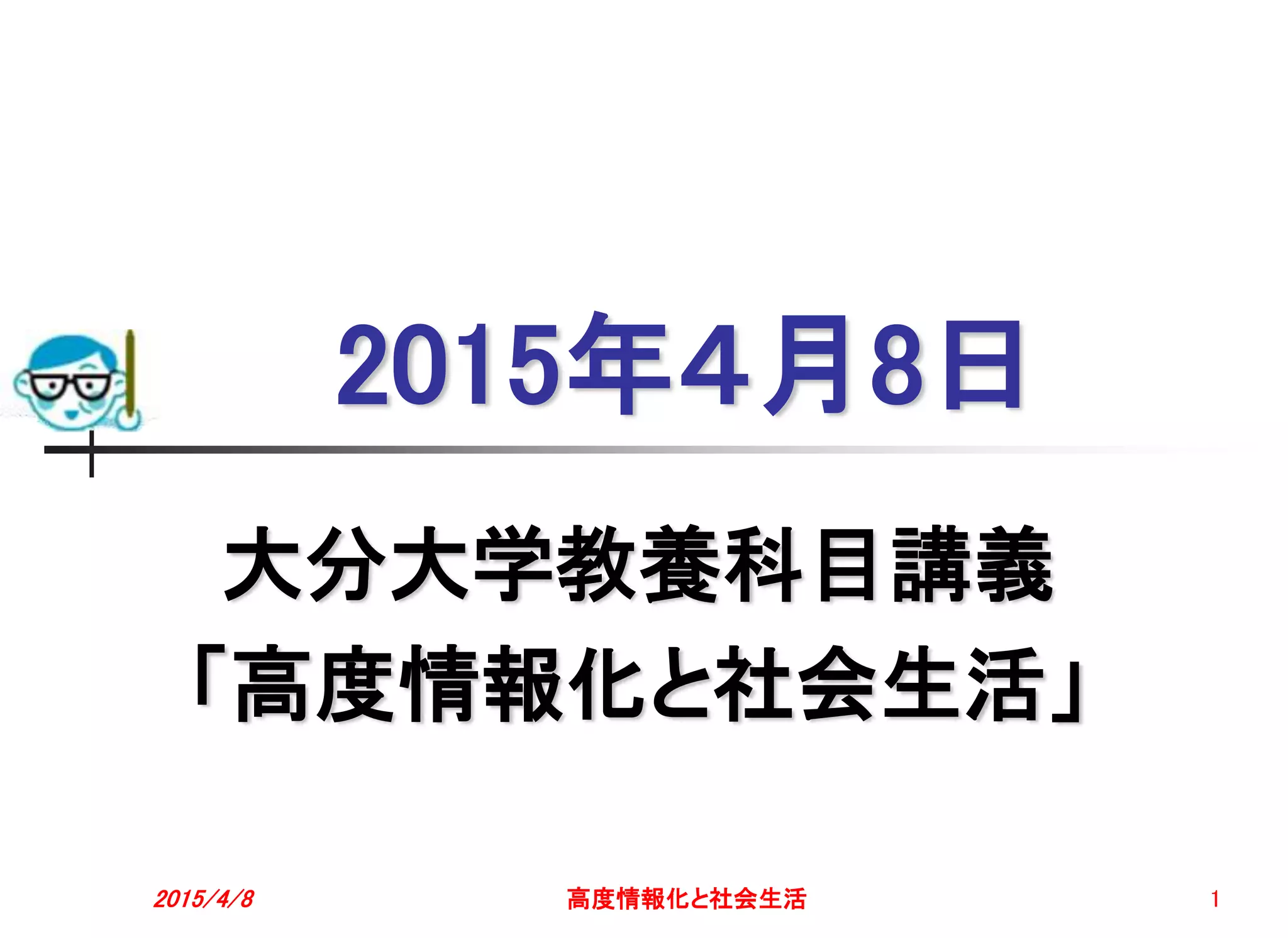 大分大学教養科目「高度情報化と社会生活」2015年4月8日講義「ガイダンス」