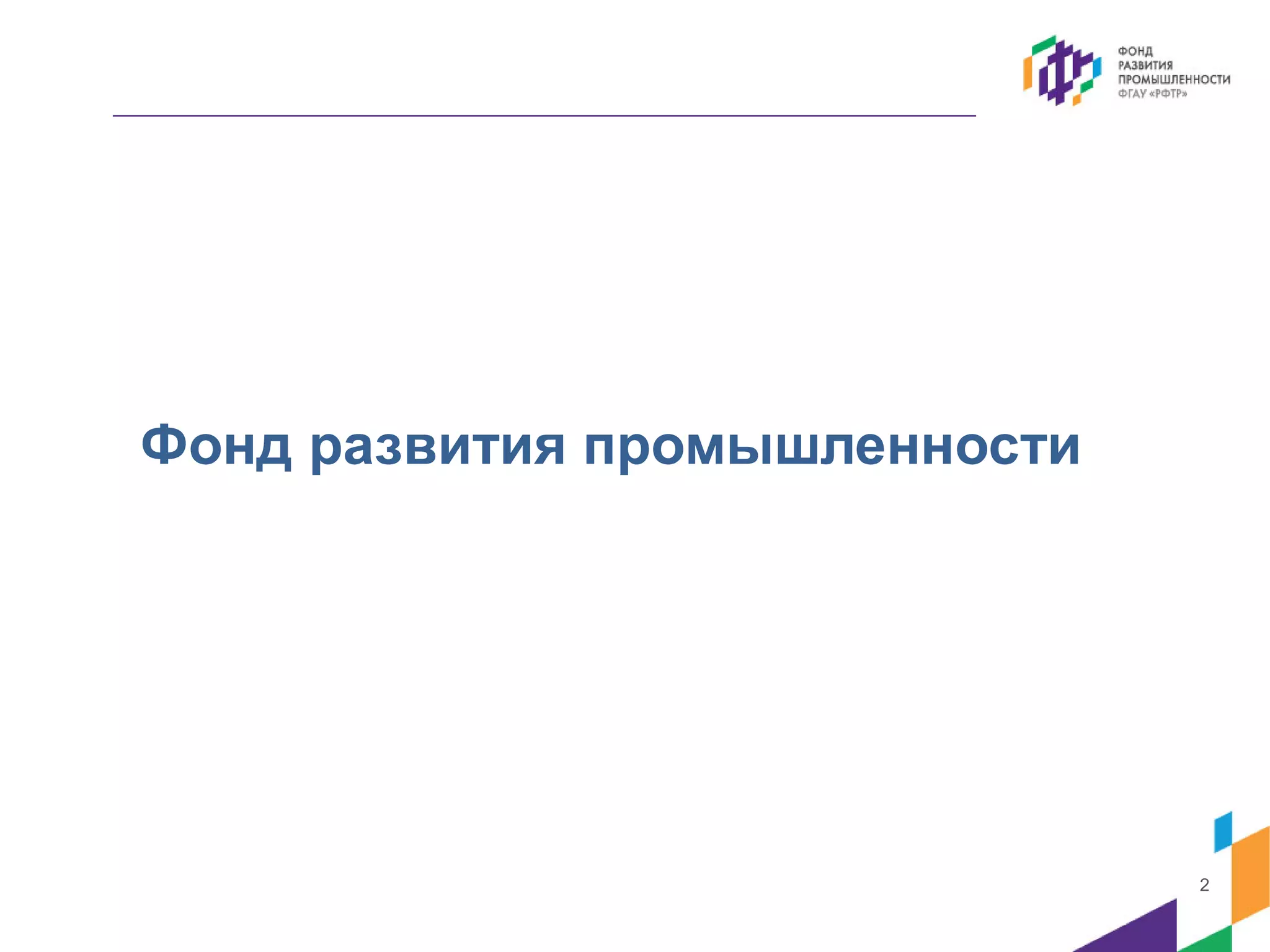 Документ описывает цели и программы деятельности Фонда развития промышленности России, включая повышение доступности займов для финансирования производственно-технологических проектов и стимулирование модернизации. Рассматриваются меры господдержки, критерии отбора проектов и условия финансирования, направленные на поддержку инновационных и импортозамещающих инициатив. Основное внимание уделено развитию отечественных технологий и обеспечению конкурентоспособности российских производителей.