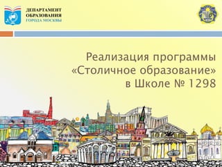 Документ описывает реализацию программы 'столичное образование' в школе № 1298, включая статистику по количеству учащихся и их успеваемости на протяжении двух учебных годов. Приведены результаты диагностики и мониторинга качества образования, а также достижения учащихся в олимпиадах и ЕГЭ. Обсуждаются принципы и направления развития образовательной системы, направленные на улучшение качества обучения и инфраструктуры школы.
