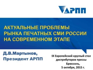 Документ обсуждает структуру рынка дистрибьюции прессы в России, включая информацию о количестве издателей, дистрибьюторов и точек продаж. Приводятся меры поддержки для распространения прессы в малонаселенных регионах, а также сведения о проводимых акциях, направленных на увеличение подписки. Указаны арендные ставки для киосков прессы в зависимости от размера населенного пункта.