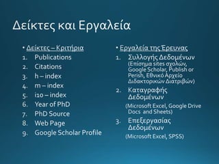Διαφορές στους αξιολογικούςδείκτες h-index,