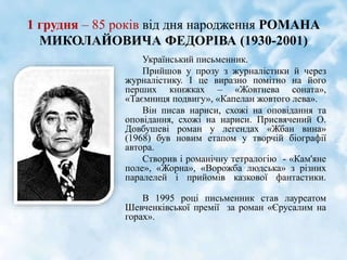 1 грудня –85 років від дня народження РОМАНА