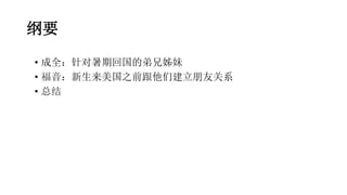 亚利桑那州立大学的2015年福音行动准备纲要重点在于帮助回国的学生圣徒融入国内的召会生活,并通过新生接触和祷告活动来建立朋友关系。文档中详细描述了为新生提供支持和信息的策略,包括使用微信公众平台进行交流和促进参与。整体目标是通过共同的祷告和服务,鼓励弟兄姊妹在主里发挥各自的作用。