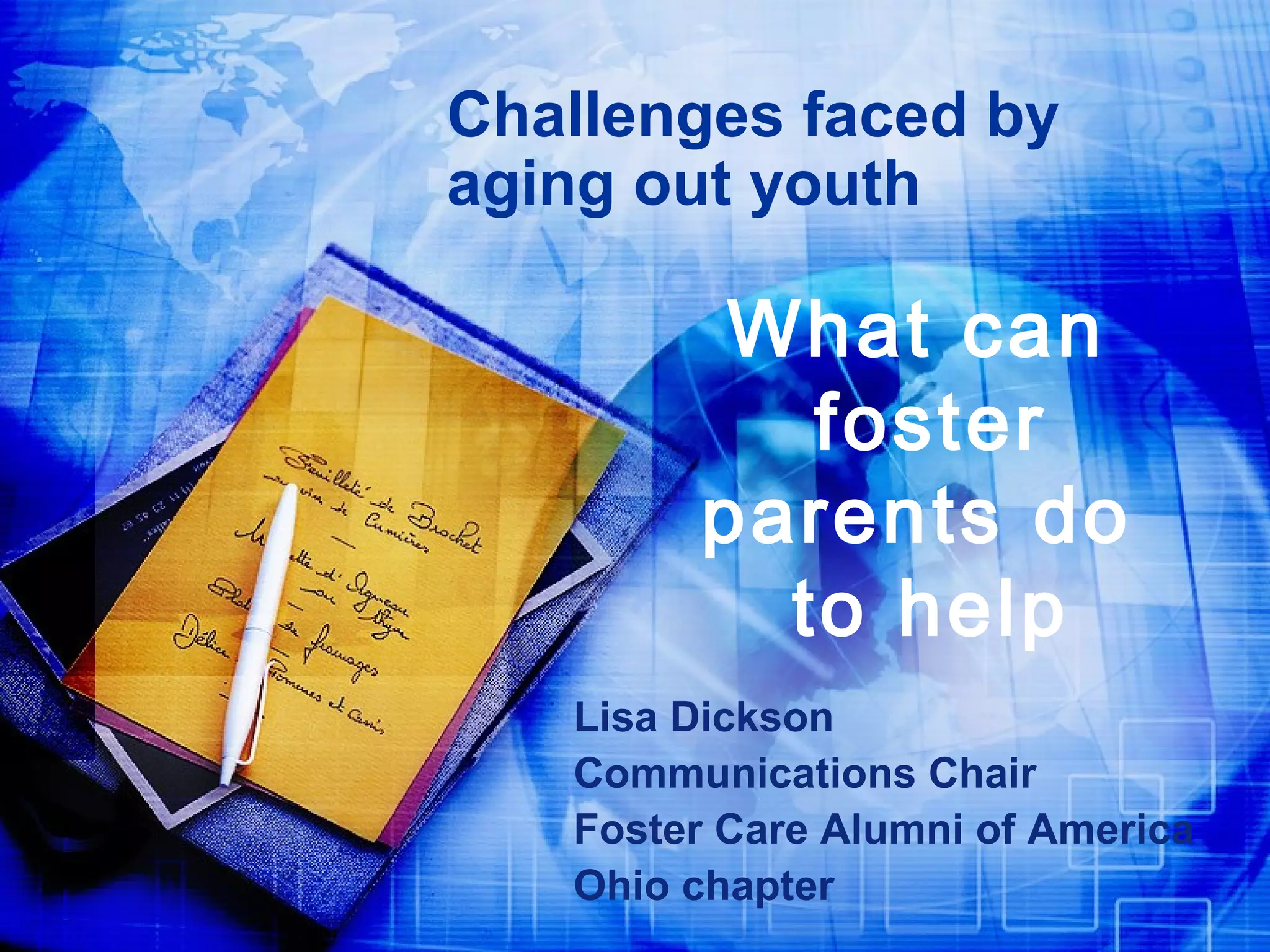 This document discusses challenges faced by youth aging out of foster care and provides suggestions to help them succeed. It addresses issues in education, employment, life skills, health, interpersonal skills, technology, and the importance of empowering youth to plan for their future. Comprehensive support is needed to address systemic barriers and improve outcomes for these youth.