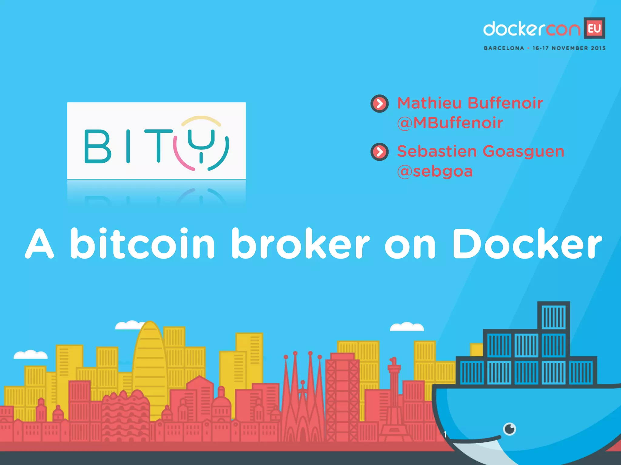 The document discusses the development and deployment of Bity.com, a regulated Bitcoin broker in Switzerland, utilizing Docker and Ansible for a scalable and efficient infrastructure. It details the transition from traditional environments to a containerized setup, the challenges faced, and the lessons learned throughout the process. Future plans include exploring Docker optimization and orchestration solutions to enhance their deployment strategy.