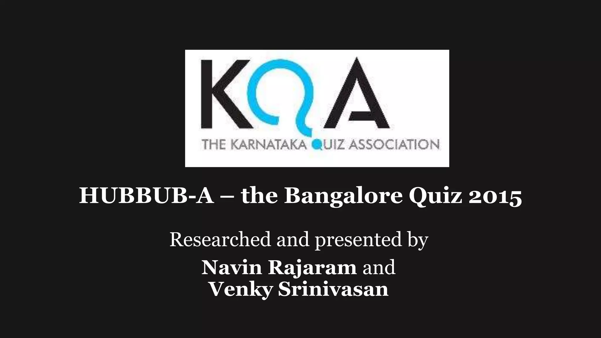 The document provides a quiz with 14 multiple choice questions related to Bangalore history and culture. Some of the questions ask about specific people, places, organizations and their origins in Bangalore. The questions are answered in the document with brief 1-2 word responses following each question.