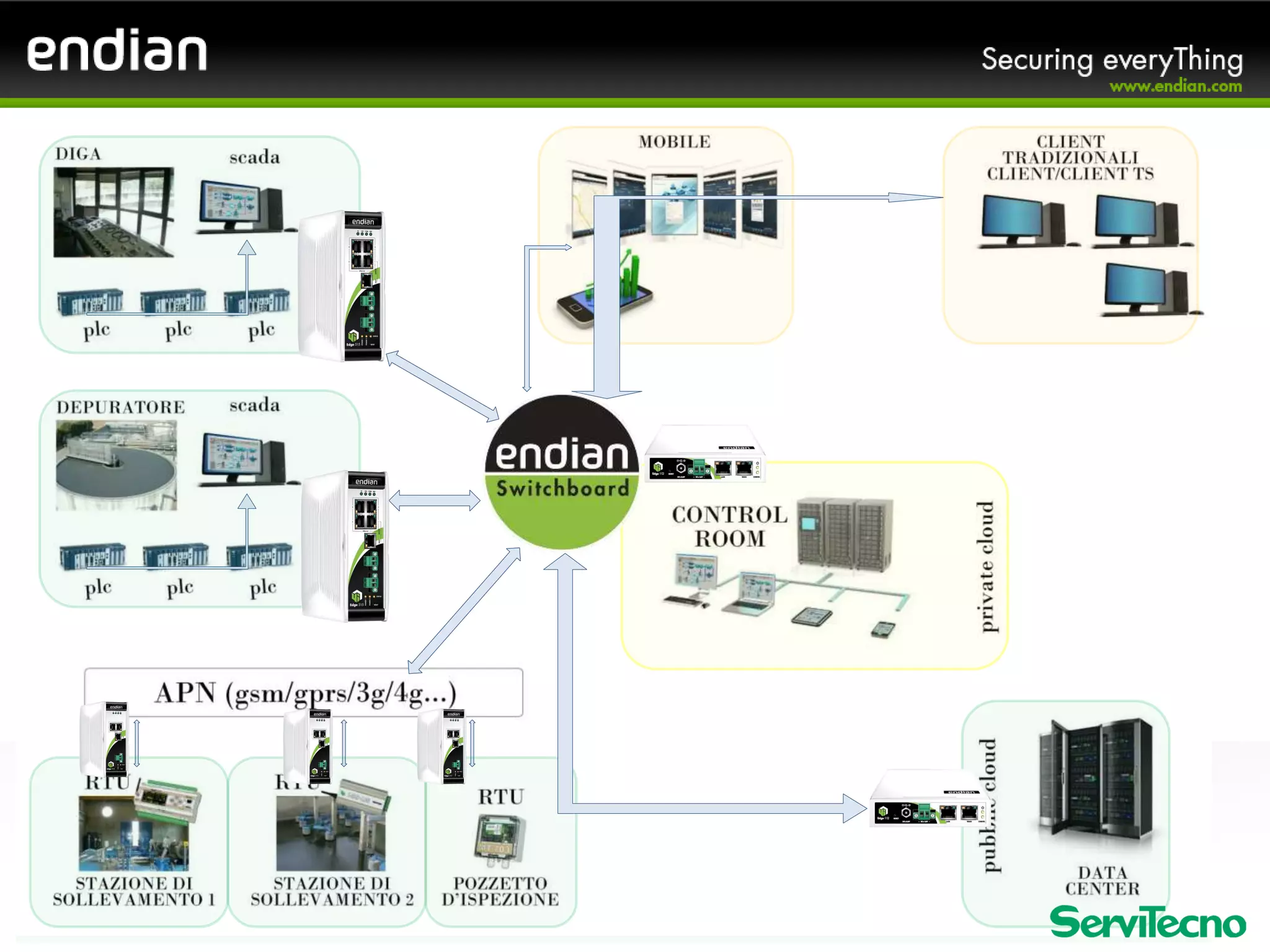 Il documento tratta delle soluzioni di cybersecurity per l'Industria 4.0, con particolare attenzione ai prodotti di Endian e Servitecno, che offrono protezioni avanzate per l'Internet delle Cose industriale. Descrive i rischi della sicurezza IoT e la mancanza di standard dedicati, oltre a presentare l'architettura della sicurezza e le funzionalità della serie 4i Edge di Endian. Inoltre, evidenzia le capacità del sistema Switchboard per gestire l'accesso degli utenti e mantenere la sicurezza in reti industriali.