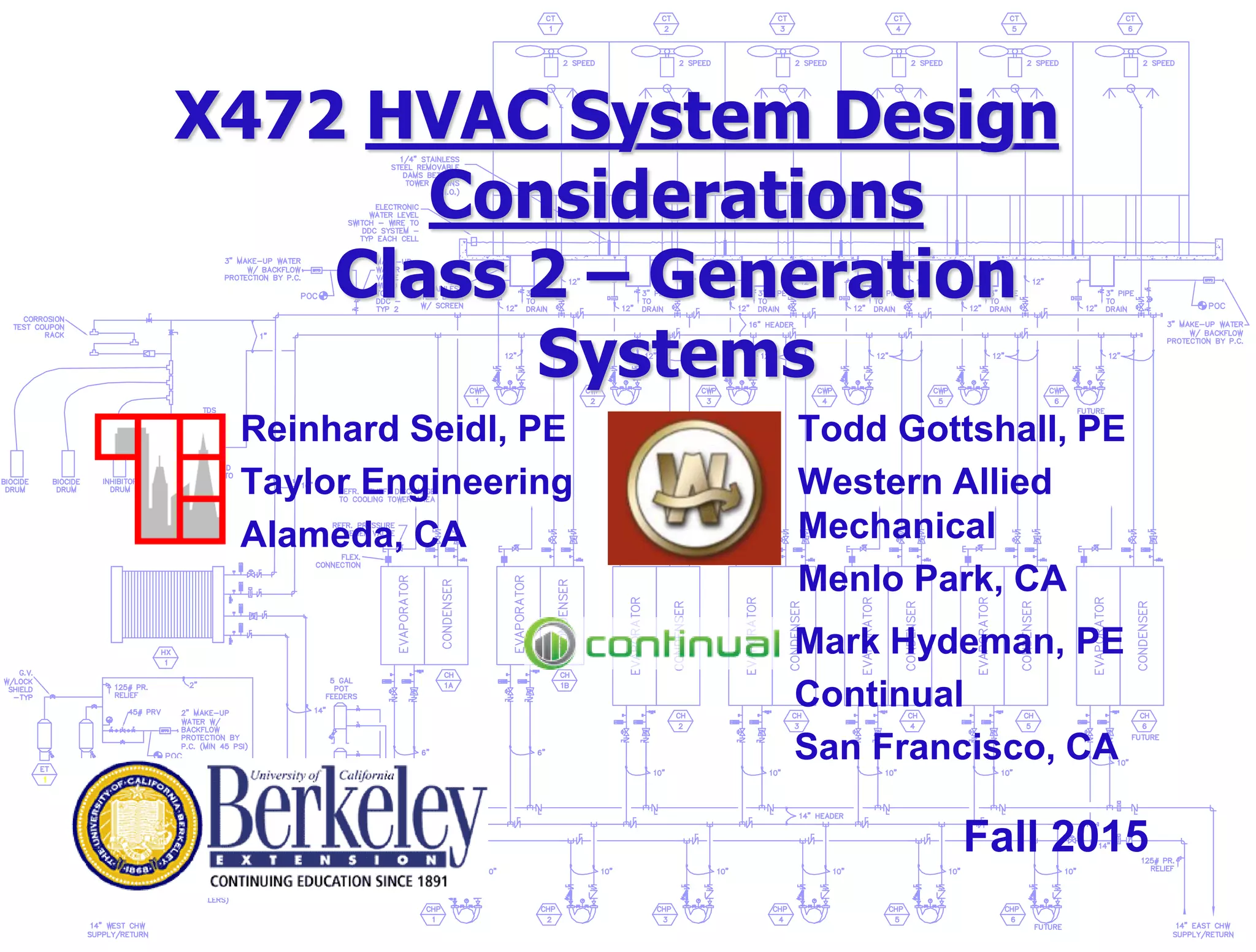 This document outlines a course on HVAC system design. It discusses various HVAC systems for different building types, including single story, multi-story, high-rise, and specialty buildings. The schedule lists topics like generation systems, distribution systems, and system selection that will be covered over the course by three instructors.