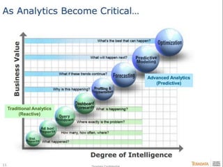2) The amount of data being created is growing exponentially, estimated at 2.5 quintillion bytes per day globally. However, most organizations are not effectively using the data they already have.