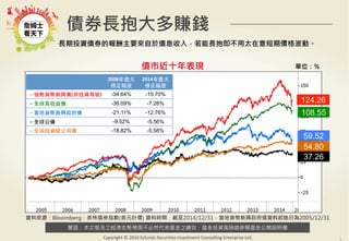 本文分析了債市的表現與經濟走勢,指出高收益債券在升息期間歷史上通常能夠維持正報酬。報告提及全球和美國的高收益債殖利率和風險利差變化,並強調長期債券投資應注重債息收入而非短期價格波動。此外,市場對未來經濟的樂觀預期及主要央行持續寬鬆的政策為債市提供支撐。