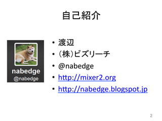 (株)ビズリーチ • @nabedge • h8p://mixer2.org • h8p://nabedge.blogspot.jp 2