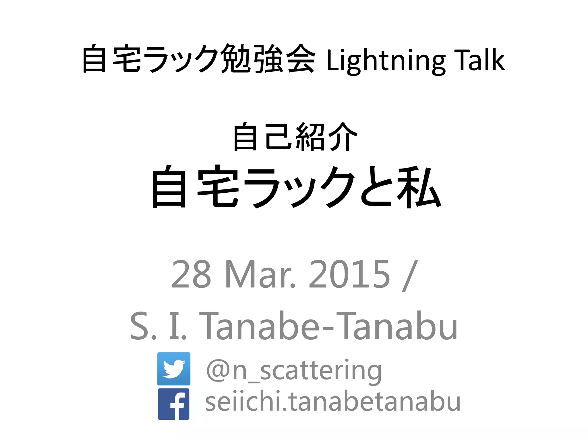 / S. I. Tanabe-Tanabu @n_scattering seiichi.tanabetanabu 自宅ラック勉強会 Lightning Talk