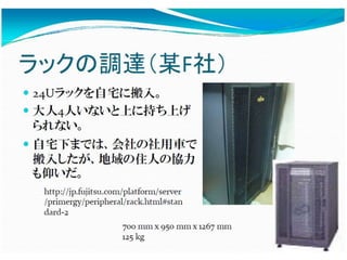 #自宅ラック勉強会 との関係 • 業務でも、ごくまれにラッキングを 担当することがある。 •