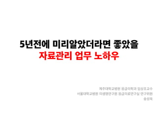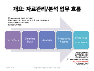 • 자료관리/분석에는 왕도가 없지만 덜 고생하는 방법
