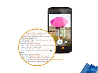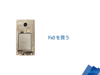 The document contains code snippets and instructions for setting up and configuring a B2G (Boot to Gecko) development environment. It includes commands to clone the B2G source code repository, configure the target device, sync and build the code, and flash the build to a device.