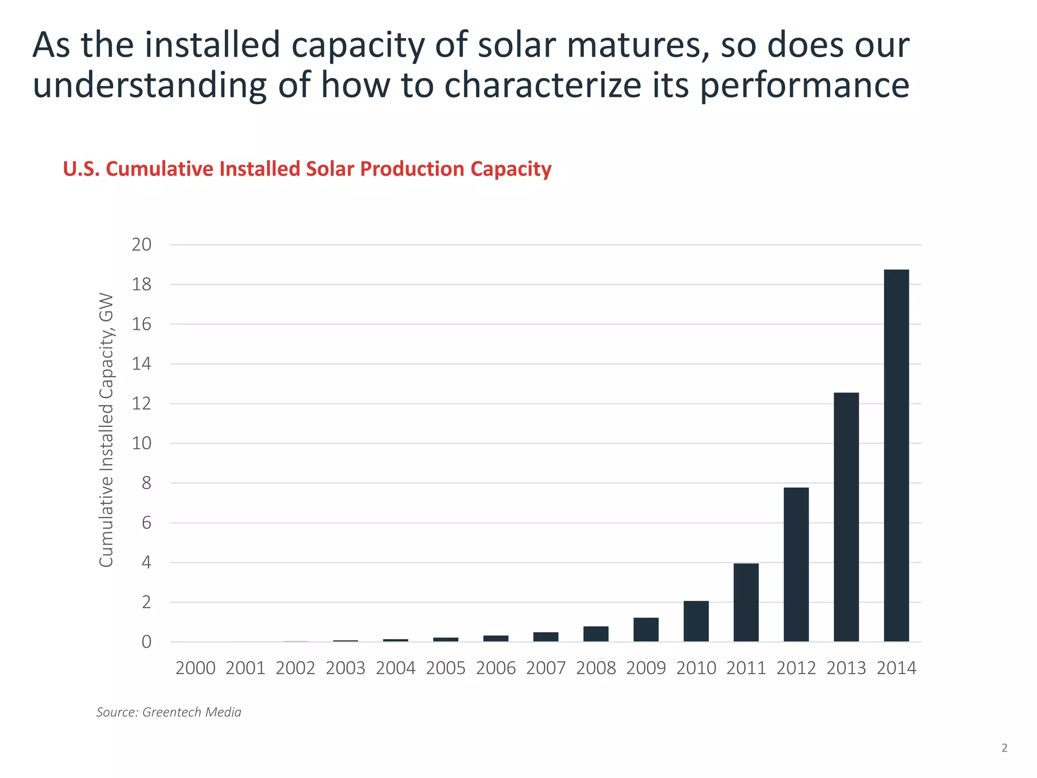 - As solar capacity increases, better understanding performance in the field is needed as PV systems often underperform models due to various factors like defects, installation issues, and weather events.