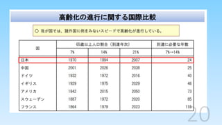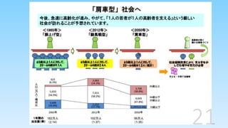 2025年問題 後期高齢者人口が、約2,200万人まで増加し、 全人口の4人に1人は後期高齢者となる 2025年には237万~249万人の就業が欠かせない。 (70-100万人程度は増やさないとマズイ) 結果