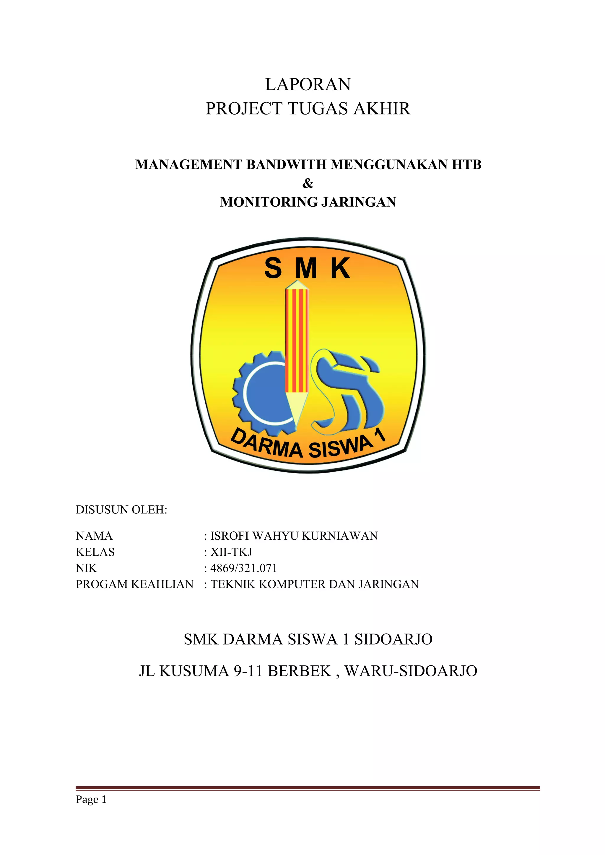 Laporan ini membahas tentang manajemen bandwidth dan monitoring jaringan lokal menggunakan Hierarchical Token Bucket (HTB) dan Simple Network Management Protocol (SNMP). Laporan ini menjelaskan cara pengaturan kecepatan bandwidth antara server dan klien, serta cara memantau aktivitas jaringan menggunakan SNMP dan MRTG.