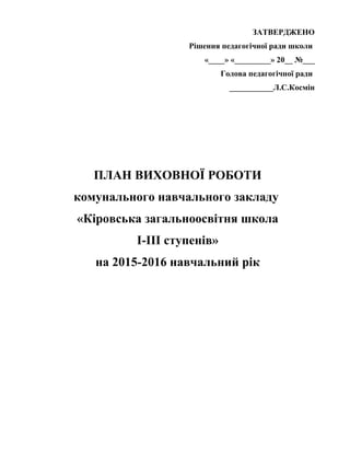 У 2014 – 2015 навчального року виховна робота педагогічного колективу КНЗ «Кіровська ЗОШ
