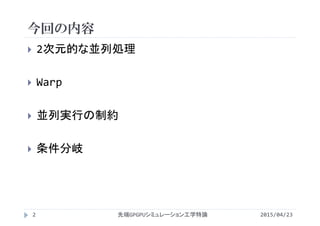 2015年度先端GPGPUシミュレーション工学特論(全15回,大学院生対象講義)