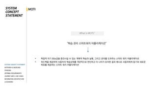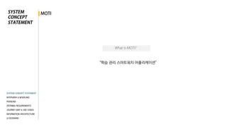 ์๊ธฐ ๏ผ ํ ์ผ์ด ์๊ธฐ๋ฉด ๋ฐ๋ก ์ ๊ธํ๋ฉด์์ to-do๋ฅผ ์ ๋ ฅํ๋ ์๋๋ฆฌ์ค ๏ผ to do list ์์ฑ์ธ์์ผ๋ก ์ ๋ ฅ๋๋ ์๋๋ฆฌ์ค ๏ผ ์๊ฐํ ์ธ์ ํ ๊ฐ ์ธ์ ์ด ๋๋๋ฉด ์๋์ผ๋ก todo ์ ๋ ฅ๋๊ธฐ (๋ฉ๋ชจ์ต๊ด) ๏ผ ์์ฒญ ๊ฐ๋จํ ์ธํฐ๋์ ์ผ๋ก todo ์ ๋ ฅํ๋ ๏ผ ๊ท์ฐฎ์ง์๊ณ ์ ๊ฒฝ์ด ์ง๋์น๊ฒ ๊ฐ์ง ์๋ ์์ฐ์ค๋ฌ์ด todo ๋ฐ๋ณต์๊ธฐ ์ฌ์ฉ์ ์ ๋ณด ์์ง ๋ฐ ๋ถ์ ๏ผ ํ์ ์ง์ค ํจํด์ ๋ถ์์ ํด์ ๋ง์ฝ ๋ณดํต 15๋ถ ์ง์คํ๊ณ ๋ด์งํ๋ ์ฌ๋์ธ๋ฐ 15๋ถ ์ด์ ์ง์ค์ ํ๋ค ๊ทธ๋ฌ๋ฉด ์ํ๋ค๊ณ ์ข ๋ ํ๋ด๋ผ๊ณ ์นญ์ฐฌ๋ฉ์์ง ๋์ฐ๋๊ฑฐ? ๏ผ ๋ด ํจํด๊ณผ ๋ค๋ฅธ ํ์๋ค ํ๊ท ํจํด ๋ถ์ํ ํ๋ฉด๋ณด๊ณ ์๊ทน๋ฐ๋ ์๋๋ฆฌ์ค ๏ผ ์ด์ ๊น์ง ํจํด์ ๋ณด ํ์ธํ๋ ์๋๋ฆฌ์ค ๏ผ ์ง๋์น๊ฒ ๋ด์ง์ ์ค๋ํ ๊ฒฝ์ฐ ๊ฒฝ๊ณ ๊ฐ ์ค๋ ์๋๋ฆฌ์ค ๏ผ ๋ ผ ์๊ฐ ๊ณต๋ถํ ์๊ฐ์ ๋ถ์ํด์ ๋ณด์ฌ์ฃผ๋ ์๋๋ฆฌ์ค ๏ผ ์ค๋งํธํ์ด๋ ์ฐ๋ํด์ ๊ณต๋ถ์ธ์ ํ์์์ ๋ชฉํ ๏ผ ๊ฐ์ธ ํ์ต ์์ํ ๋ ๊ทธ๋ ๋ชฉํ๊ฐ ์๋์ผ๋ก ์ค์ ๋์ด ์ฃผ์ด์ง๋ ์๋๋ฆฌ์ค ๏ผ ๊ณต๋ถ ๋ง์น ํ ๋ชฉํ๋ฌ์ฑ๋ฅ ์๋ ค์ฃผ๋ ์๋๋ฆฌ์ค ๏ผ ํ๋ฃจ์ ์ด๋ฃฐ์์๋ ํ์ค์ ๋ชฉํ์ ์/๋ชป์ด๋ฃฌ ๋ชฉํ ๋ค์๋ ๋ก ๋์ด๊ฐ ์ผ์ ๊ด๋ฆฌ ๏ผ ์์นจ์ ์ผ์ด๋๋ฉด ํ๋ฃจ ์ผ์ ์ ๋จ๋ ๊ฑฐ ๏ผ ์์ ๋จ์ ์๊ฐ(due date) ๋ณด์ฌ์ฃผ๋ ๊ทธ๋ํ ํ์ธํ๋ ์๋๋ฆฌ์ค ํน์ ์ฑ ์์ฒด์์ ํธ์๋ก ํ์ธ ๏ผ ์ผ๊ณผ ์์ํ ์ ๊ณผ์ ์ ์ถ ๋ ์ง ์๊ธฐ์๋ฆผ ๏ผ ๊ธฐ์ ์๋ฆผ ๊ธฐ๋ฅ ์ค์ ํด์ ์์นจ์ ์ง๋/์๋ฆฌ๋ก ์ผ์ด๋๋ ์๋๋ฆฌ์ค ๊ณต๋ถ์ต๊ด๊ต์ ๏ผ ์ง๋์น๊ฒ ๋ด์ง์ ์ค๋ํ ๊ฒฝ์ฐ ๊ฒฝ๊ณ ๊ฐ ์ค๋ ์๋๋ฆฌ์ค ๏ผ ๊ฐ์ธํ์ต์๊ฐ์ ๋ด์๋น์ค ๋ธ๋ก๋์ด ์ฌ์ฉ๋ชปํ๋ ์๋๋ฆฌ์ค(๊ทน๋จ์ ) ๊ณต๋ถ๊ด๋ฆฌโฆ. ๏ผ ๋ชจ๋ฅด๋๋ฌธ์ ์ฒดํฌ ๋ฐ ๊ด๋ฆฌ ๏ผ ๊ทธ๋ ์ ๊ณต๋ถ ํผ๋๋ฐฑ ๋๊ธฐ๋ถ์ฌ ๏ผ ๊ณต๋ถ ํ๊ธฐ ์ซ์ ๋ ์ข์ํ๋ ์น๊ตฌ/์ฐ์์ธ์ด ์กฐ์ธํด์ค์ ๋ค์ ๊ณต๋ถ์ ์ง์คํ๋ ์๋๋ฆฌ์ค ๏ผ ํ๋ค ๋ ์๋กํด์ฃผ๋ ์๋๋ฆฌ์ค ๏ผ ๊ฒฝํ์์ ์กฐ์ธ ๏ผ ์ด๋จ ๋๋ ์กฐ์ธ์ด ๋๊ณ ์ด๋จ ๋๋ ์์๋ฆฌ๋ก ๋๊ปด์ง๋ ์๋๋ฆฌ์ค ๊ณต์ ๏ผ ์๋ฐ์ : ๊ทธ๋ ๊ณต๋ถํ ๊ธฐ๋ก ์บก์ณํด์ ๊ณต์ ํ๋ ์๋๋ฆฌ์ค ๏ผ ๋น์๋ฐ์ : ๋ถ๋ชจ์๊ฒ ํํฉ์ด ์ ์ก๋๋ ์๋๋ฆฌ์ค ์๋ฐํ ๏ผ ์ค๋งํธ์์น์ ๋ชจํฐ๋ฅผ ๋ฐ๋ผ๋ณด๋ฉด์ ์์ผ๋ฉฐ ํ๋ฃจ๋ฅผ ์์ํ๋ ์๋๋ฆฌ์ค ๏ผ ๊ณต์ ๋ฅผ ํตํด์ ๊ฒฝํ์์ ์กฐ์ธ ๏ผ ๊ณต๋ถ ํ๊ธฐ ์ซ์ ๋ ์ข์ํ๋ ์น๊ตฌ/์ฐ์์ธ์ด ์กฐ์ธํด์ค์ ๋ค์ ๊ณต๋ถ์ ์ง์คํ๋ ์๋๋ฆฌ์ค