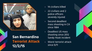 This document summarizes the dispute between Apple and the FBI over unlocking an iPhone used by one of the San Bernardino shooters. It describes the 2015 terrorist attack, the FBI's request that Apple create a backdoor to unlock the shooter's work iPhone, and Apple's refusal on security grounds. It also discusses the FBI obtaining a court order, concerns over data privacy and security if backdoors are created, and support for Apple's position from privacy advocates like Edward Snowden.