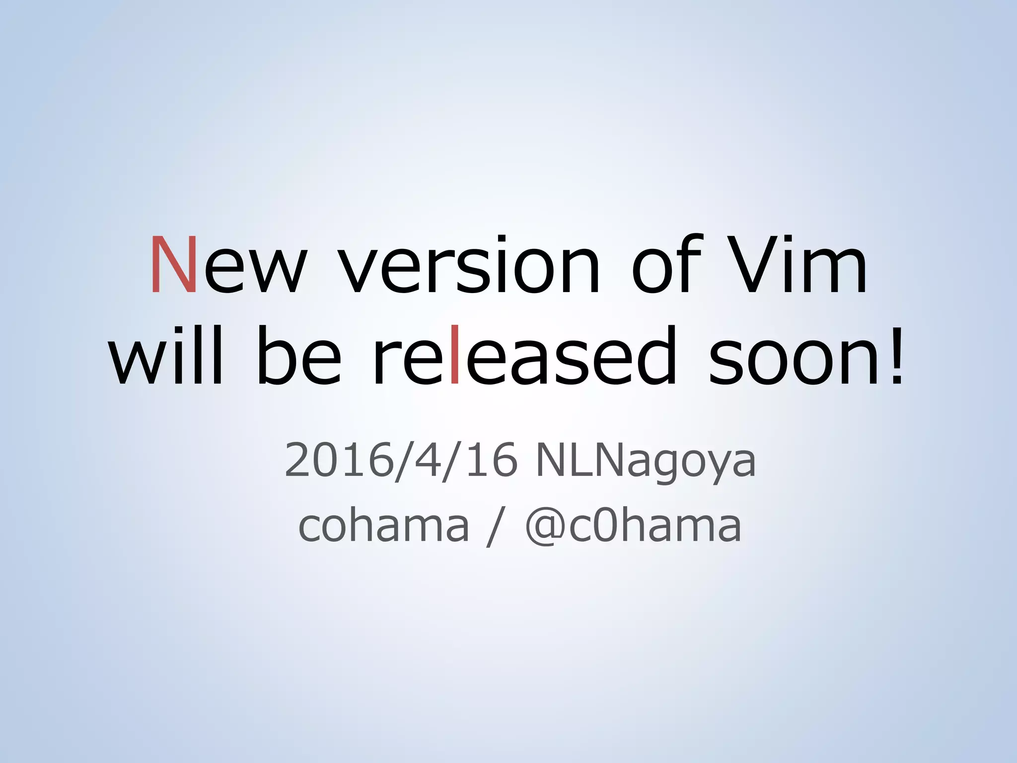 Vim will be released soon! 2016/4/16 NLNagoya cohama / @c0hama