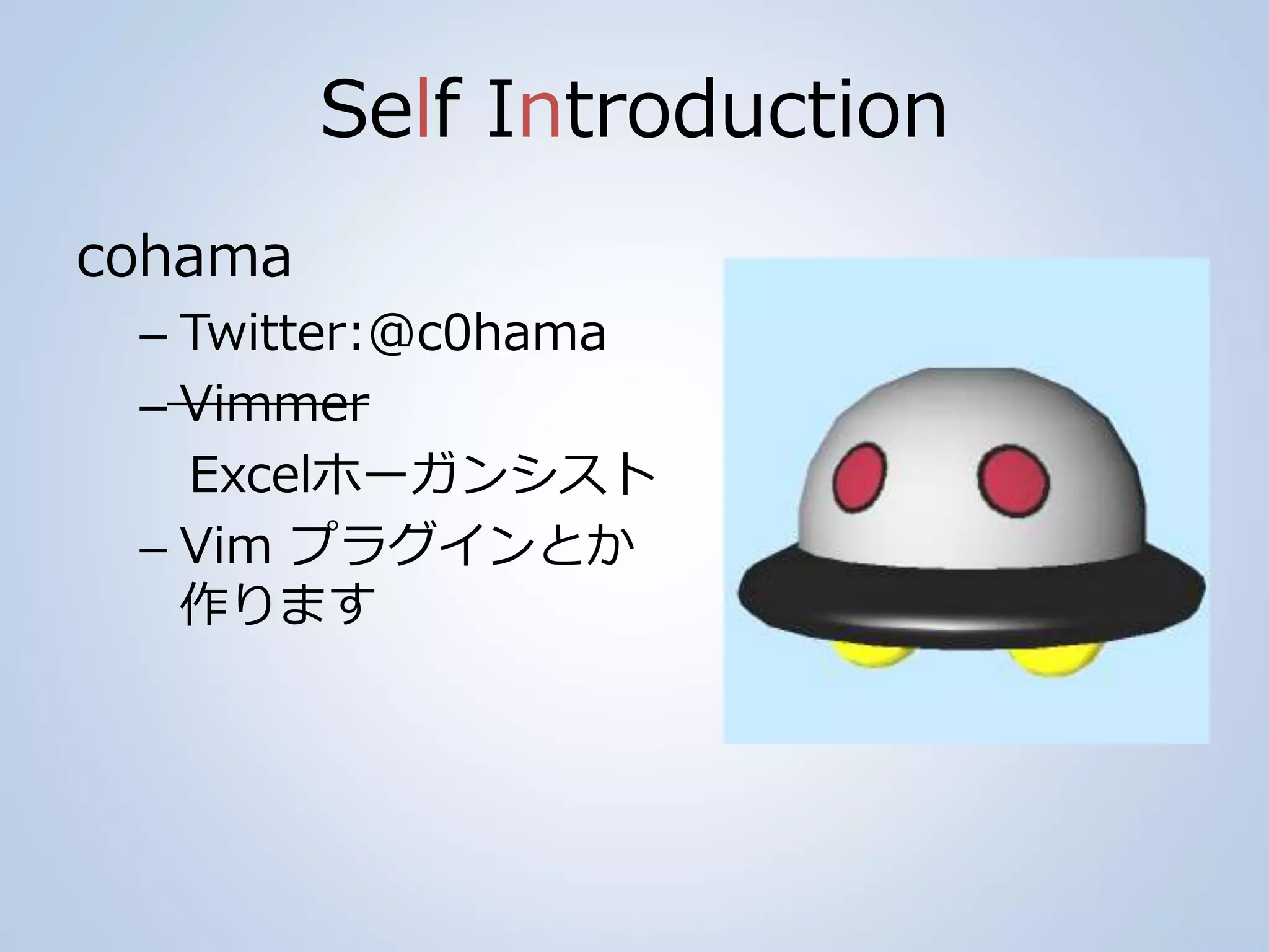 Self Introduction cohama – Twitter:@c0hama –