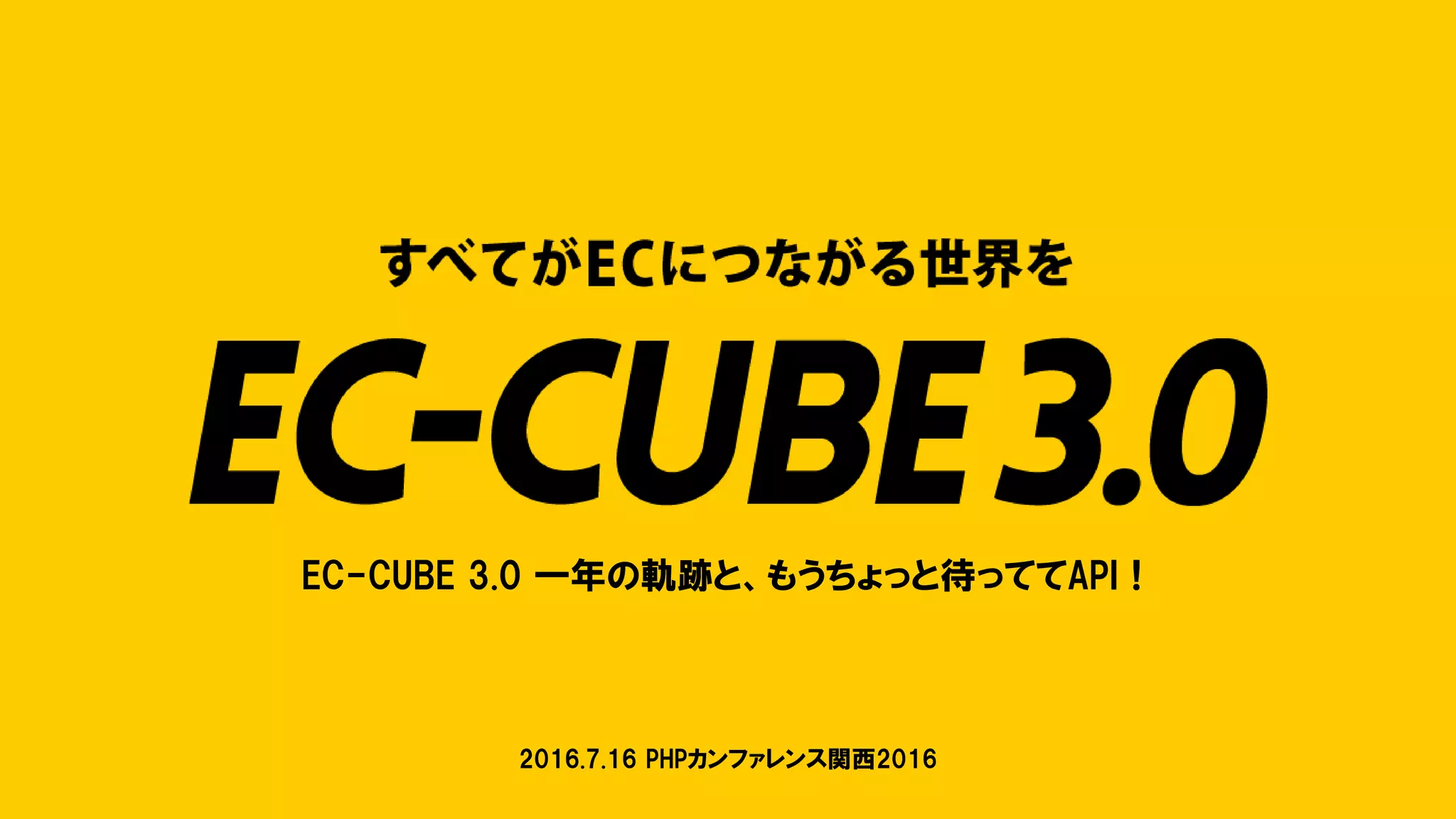 PHPカンファレンス関西2016 「EC-CUBE 3.0 一年の軌跡と、もうちょっと待っててAPI!」の発表スライド。