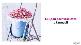 Документ описывает акцию компании Farmasi, которая проходит в марте 2016 года и предлагает скидки и подарки для консультантов при выполнении определенных условий заказов. Консультанты могут получить различные подарки, такие как шампунь и парфюмерные наборы, при заказах от 50 бб. Программа действительна в марте 2016 года и не является накопительной, что означает, что каждый консультант может получить только один подарок за каждый из трех заказов.