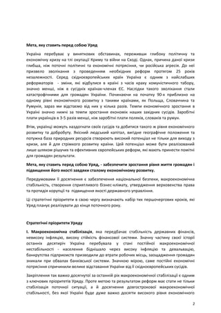 розвитку. Для цього,Уряд провадитиме виважену та відповідальну економічну