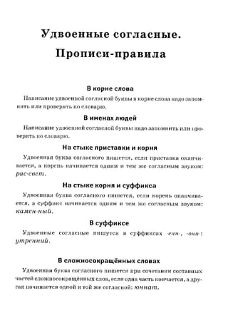 Читать учебное пособие для младших школьников автора Матекиной Э.И., Удвоенные согласные, Прописи-правила, издано в 2016 году.
