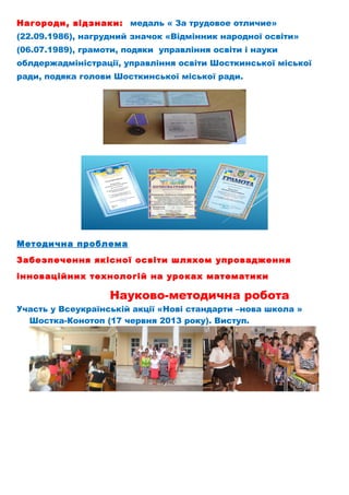 (06.07.1989), грамоти, подяки управління освіти і науки