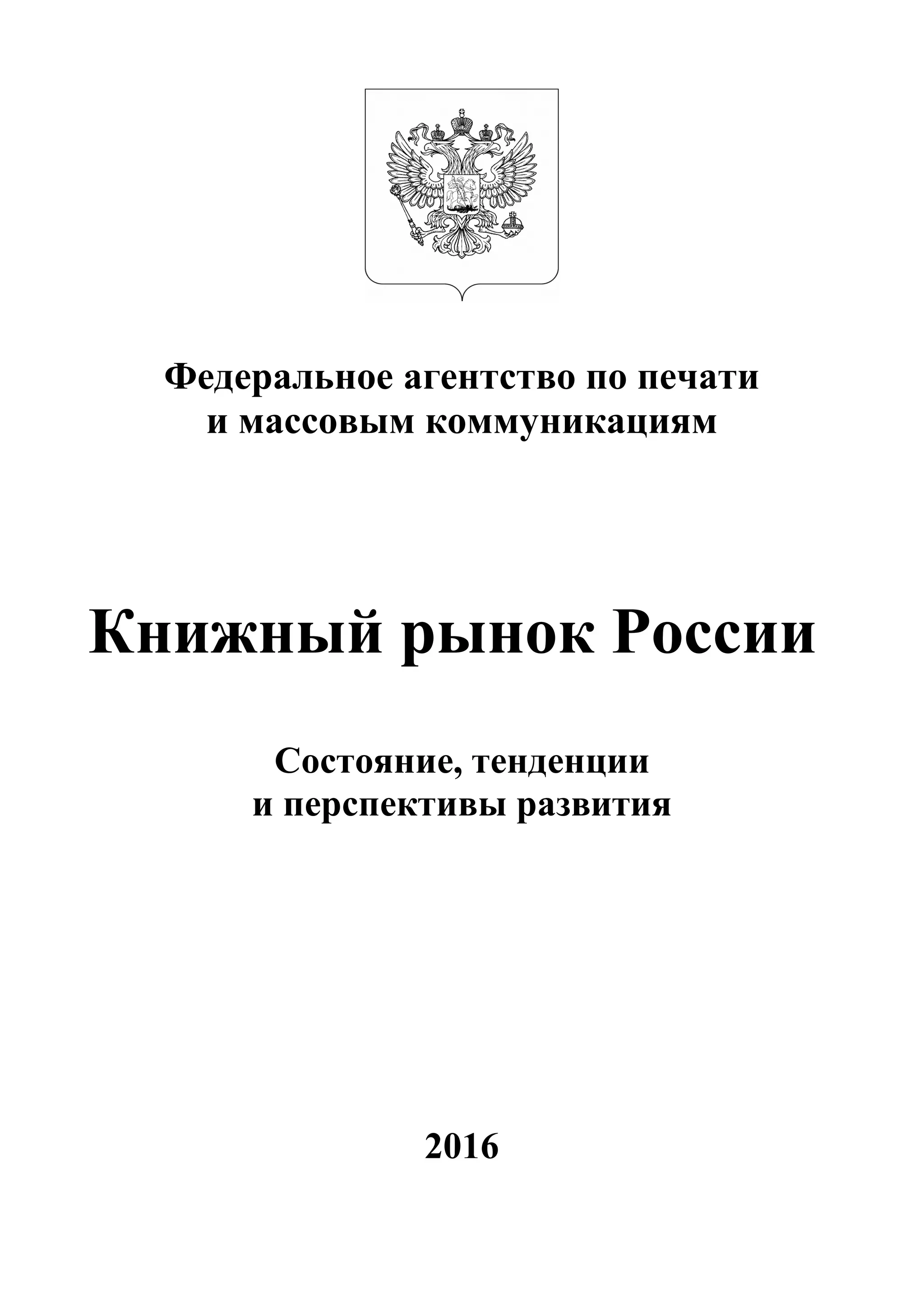 Доклад федерального агентства по печати и массовым коммуникациям охватывает состояние книжного рынка России в 2016 году, освещая его основные показатели, тенденции и перспективы развития. Несмотря на падение тиражей и числа выпущенных книг в последние годы, в 2015 году наблюдается определенная stabilизация и рост популярности чтения, что связано с действиями государственной политики и календарем года литературы. В докладе также анализируются законодательные инициативы и динамика электронного книгоиздания.