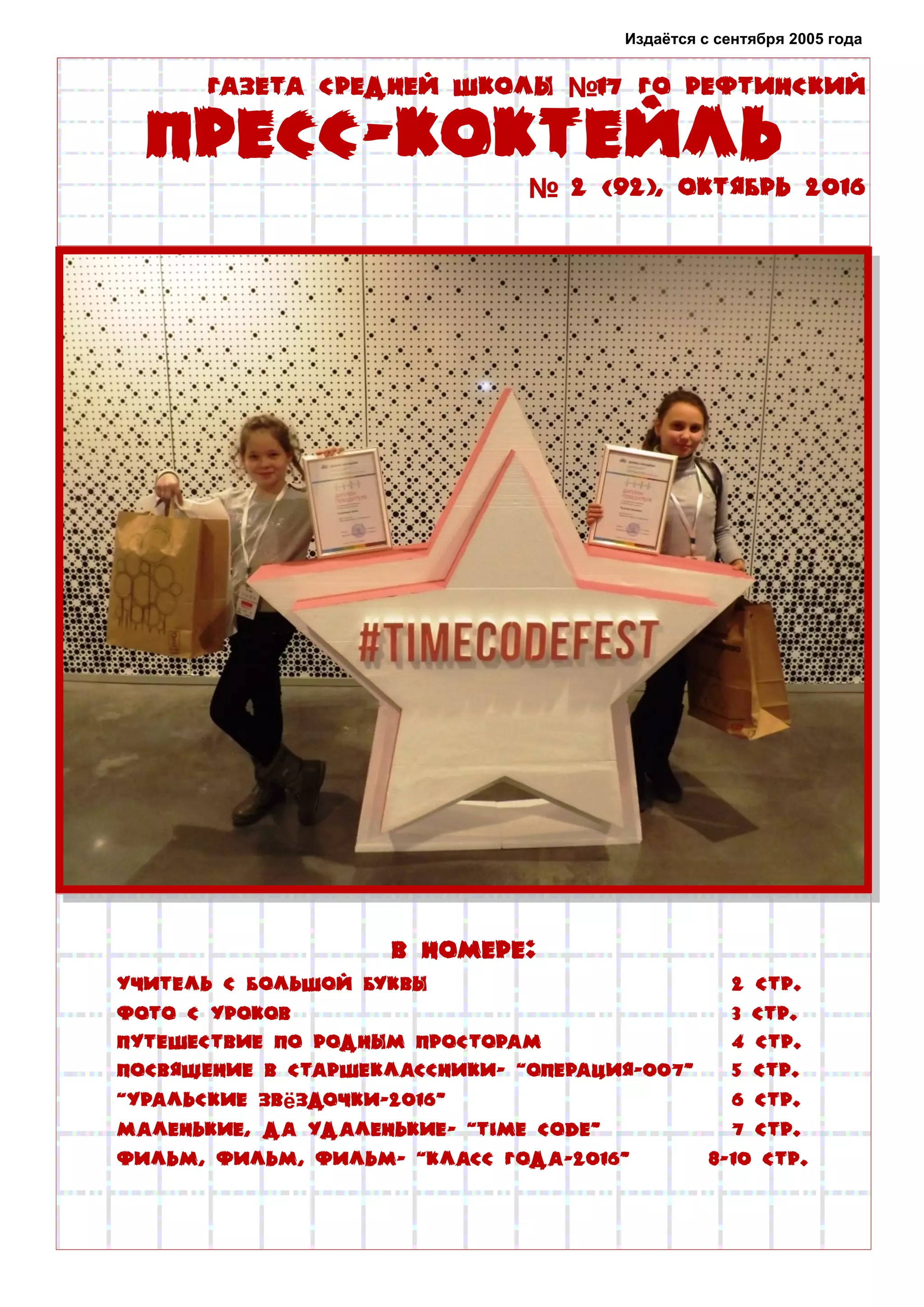 В октябрьском выпуске газеты средней школы № 17 описаны мероприятия, проходящие в учебном заведении, включая празднование Дня учителя и посвящение в старшеклассники. Учителя и ученики активно участвуют в различных конкурсах и культурных акциях, включая поездки по родным просторам и творческие фестивали. Среди ярких моментов отмечены впечатляющие выступления, уроки и цели организации праздников, подчеркивающие значимость образовательного сообщества.
