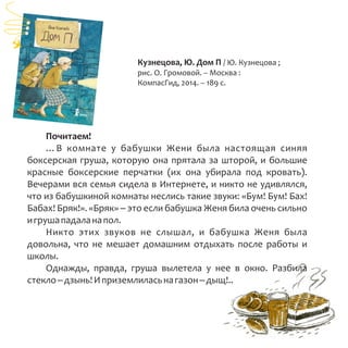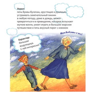Документ описывает книгу для детей и юношества, посвященную необычным бабушкам. Он содержит информацию о доступности электронной версии книги на платформах Android и iPhone, а также контактные данные библиотеки. Книга предназначена для молодежной аудитории и доступна через приложение Teenbook.