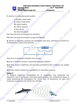 Β. Από την κυματική εξίσωση c fλ= ⋅ το μικρότερο μήκος κύματος θα το έχει το δελφίνι
