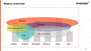 Документ обсуждает применение больших данных для оптимизации рекламных кампаний и улучшения инвентаря. Представлены примеры успешного таргетирования и прогноза в различных платформах, включая повышение точности и эффективности на примере различных компаний. Основное внимание уделяется наращиванию показателей KPI и взаимодействия с рекламой.