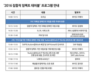 SAP Korea 와 D코리아 재단이 진행하는 Autism@Work 프로그램의 일환으로 MYSC는 자폐성 장애인의 자립으로 연결되는 '집합적 임팩트'(Collective Impact) 프로그램을 기획했고, 이에 대한 성과공유를 진행했습니다.