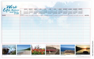 The document outlines a personalized vacation planning service that emphasizes tailored customer service over generic solutions. It includes a calendar layout for managing employee vacation days throughout the year. The service aims to promote work-life balance and individual attention to client needs.