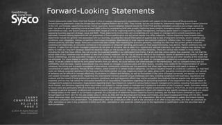 Sysco provided a forward-looking statement regarding risks and uncertainties in its business, including risks related to the economy, inflation, deflation, currency fluctuations, international expansion, acquisitions, capital expenditures, and estimates for future periods. The statement notes that actual results may differ materially from forecasts due to general risks associated with the business, economic conditions, and factors beyond management's control.