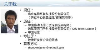 文档探讨了敏捷开发的实施,包括团队目标、文化、管理制度、能力及技术工具的重要性。成功的敏捷开发依赖于团队的清晰目标与良好文化,支持的管理制度,以及成员的能力和合适的工具。最终,敏捷是一种自我进化的文化,需要持续改进与创新。