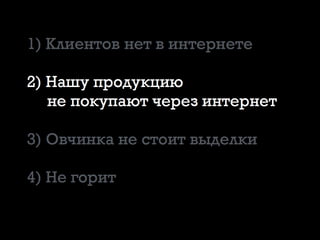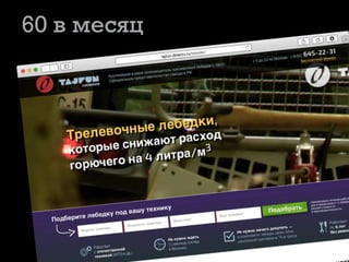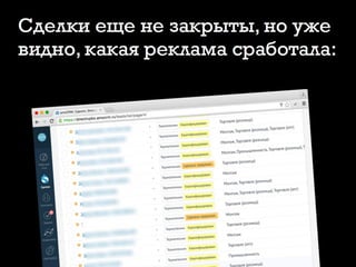 Документ описывает стратегии сбора клиентской базы через интернет для оптовых и производственных компаний, акцентируя внимание на сокращении цикла сделки и избавлении от холодных звонков. Основные темы включают интернет-продажи, развитие сайта, увеличение посещаемости и использование колтрекинга для анализа источников клиентов. Упоминаются различные подходы и методы привлечения клиентов, такие как бесплатные предложения и квалификация целевой аудитории.