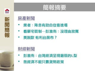 ●業者:降息有助自住客進場 ●看豪宅管制…彭淮南:沒理由放寬 ●英脫歐 有利台房市? ●彭淮南:台灣經濟呈現最弱的L型 ●救經濟不能只靠貨幣政策